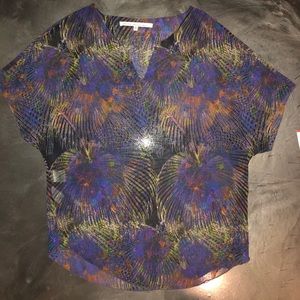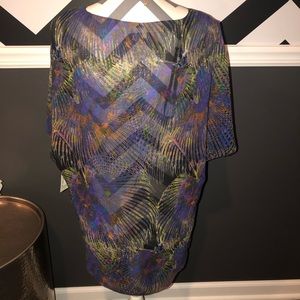 New with tags. Gorgeous lightweight, sheer top. RACHEL by Rachel Roy “Dharma Dreaming” Blouse in a women’s size extra small. There is a very small flaw in this. The “V” portion of the neck there is a very small tear (as shown in photo).