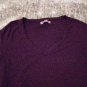 Michael Stars purple long-sleeved t-shirt with wide cuffs at sleeve end.