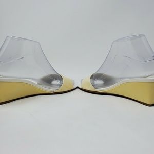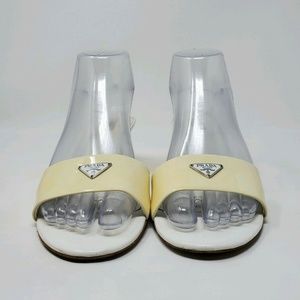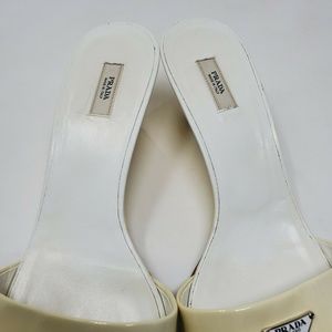Vintage AUTHENTIC Prada Womens White Wedge Heels Mules 38.5 US 7.5