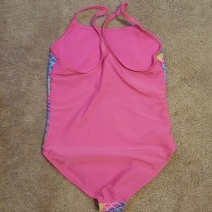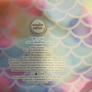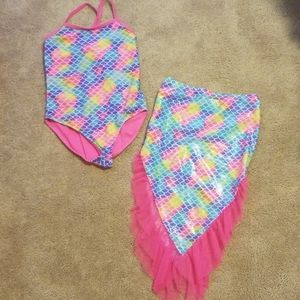 Girls size M 7/8 mermaid design bathing suit with mermaid style skirt/bottom cover up.