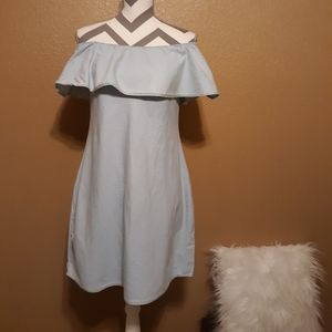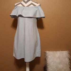 Light wash off the shoulder denim dress, can be worn on or off the shoulders! In excellent condition I only worn it once!