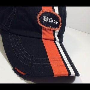 Motorcycle Biker Hat / Cap Black Tattered Stripes