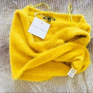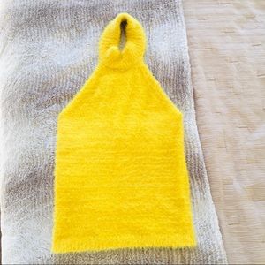 FUZZY YELLOW 90’s Inspired HALTER TOP Small S NEW