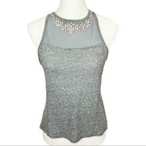 Hollister Cali- Gray Sheer Jeweled Halter Tank-S