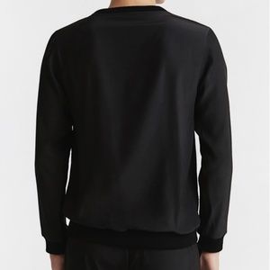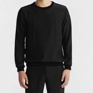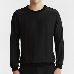 Black crew-neck top with long sleeves.