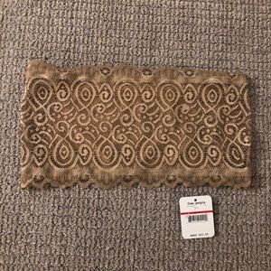 American made sheer crochet lace bandeau with scalloped trim and a stretchy seamless back. Can be worn with lace in the front or the back.