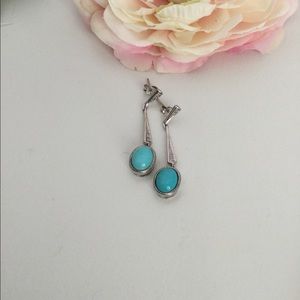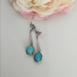 10k, 3.9 gm SLEEPING BEAUTY TURQUOISE earrings with diamond accents. Classic drop style earrings with post and 10k original nut backs. These earrings will perk up jeans to little black dress. Sleeping beauty Turquoise has always been treasured for its lack of matrix. The Arizona mine has been closed for some time. Checked/tested. Sales support street cat rescue.
