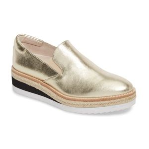 Buy these Gold Espadrille Sporty Outsole Oxford Rainer Platform Slip ons from Kenneth Cole New York.