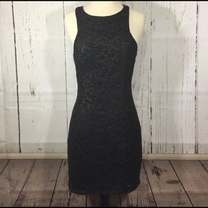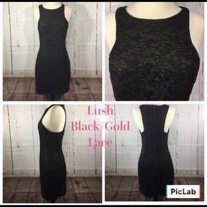 Lush NWOT Black/Gold Lace Fully Lined Dress