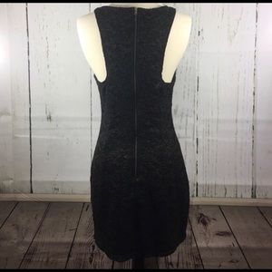 Gorgeous and fully lined, this form fitting black and gold lace cocktail dress is just stunning on and in like new condition. Made from 25% nylon and 75% cotton with a 100% polyester lining. Zips up in the back , size M . Length from shoulders to hem is 34” and bust is about 16 1/2 “ laying flat!