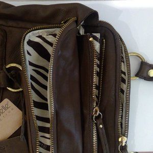Want to look and feel like a celebrity? This espresso brown Linea Pelle Bag with solid brass hardware is just what you need! Made of the softest pebbled leather, designed to give you maximum room while looking chic. Three large pockets and smaller ones to organize all of your necessities. As seen on Ashley Tisdale, Vanessa Hudgens, Audrina Patridge. Each handbag is unique as a result of the leather technique used. Bag measures approximately 15x15.