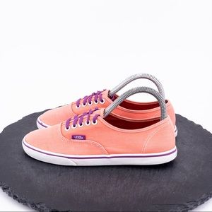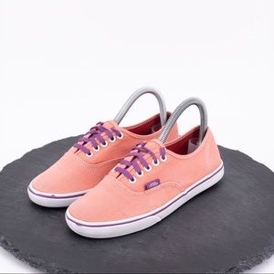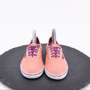 The product you are purchasing is a pair of Vans Womens Shoes in a size 6.5. These shoes are in good condition w/ a few pictured signs of wear. They have a low ankle retro sneaker design and the heel/sole is in good condition with lots of life left In them. They have been cleaned/conditioned, buffed, and polished.