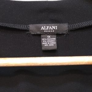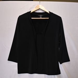 Lovely Black tie-neck, pull over blouse with long sleeves. 95% Polyester 5% Spandex. Simple but Sophisticated....perfect addition to any wardrobe.