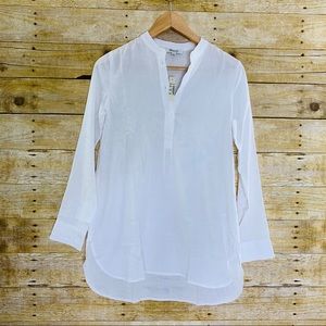 Description: NEW WITH TAGS! A buttoned half-placket details a breezy Madewell tunic, styled in an easy pop-over silhouette. Slim, stand-up collar. Curved hem. Double-button cuffs..