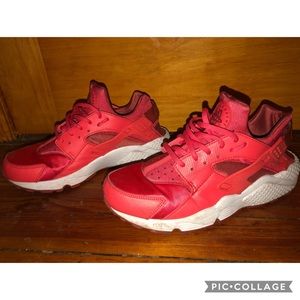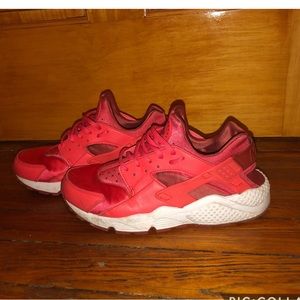Cayenne pepper in color, Nike womens huarache sneakers, in good condition, creasing in front of sneaker which can’t be seen once sneakers are on