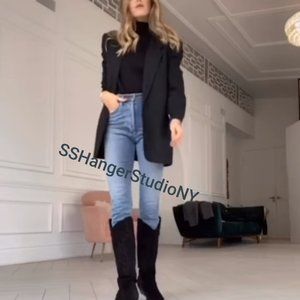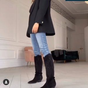 NWT ZARA Black Suede/Leather Heeled COWBOY Boots