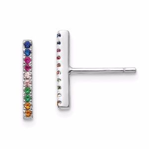 Sterling Silver Rhodium-Plated Colorful CZ Bar Post Earrings