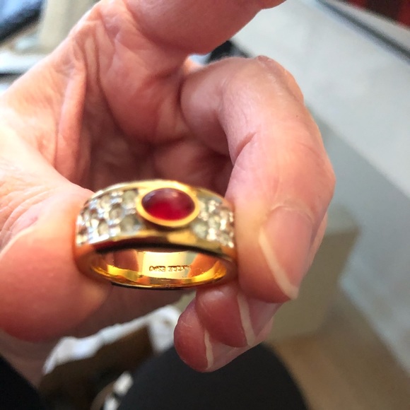 VINTAGE CABOCHON RUBY W/RHINESTONE 14K GOLD PLATED RING