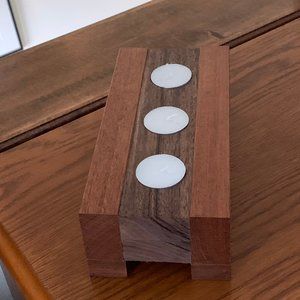 Three Tea Light Candle Holder. Handcrafted from exotic woods. Ipe is in between