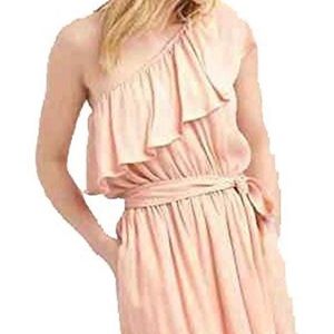 37” length Shoulder off pretty dress in peachish pink, perfect for an evening date or Valentine’s Day