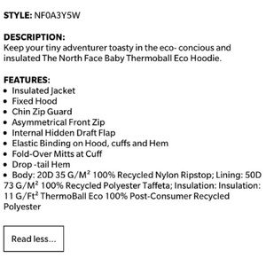 NORTH FACE*Baby Thermoball Eco Jacket**3-6 mo. $90