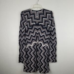 Excellent used comdition. Wool blend bell sleeve V-neck dress with knit construction and multicolor chevron pattern details. - V-neck - Bell sleeves with zip details - 2 side slash pockets - Solid knit construction - Allover multicolor chevron pattern .