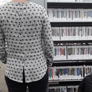 Black and white blouse by H&M size 2. Love the buttons on the back.