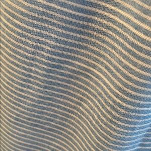 *Pretty blue lined stripe off the shoulder dress has lots of detail with the pull on style, the 3/4 sleeves, the ties on the shoulders, the bottom ruffle design, the end of sleeve ruffle, the elastic top of the dress for stretch & the beautiful loose flow fit