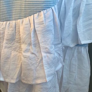 ❌DONATED❌Blue Stripe Off The Shoulders Oversized Flowy Ruffle Hem Dress