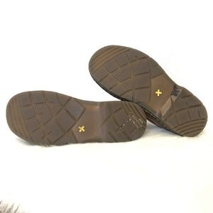 In good used condition with minor flaw, there is a dark spot on the left inside shoe and a mark on the outside side of shoe.