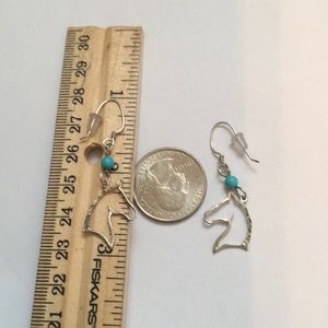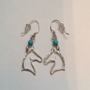 Sterling Silver Stamped 925 Horse Head Turquoise bead Earrings on French hooks. 2” total length. EUC