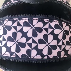 Material: Nylon trimmed with genuine leather. Silver hardware.