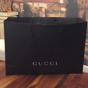 Includes Gucci hanger, garment bag and Gucci large paper bag.