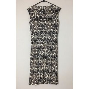 • Style : sleeveless slightly cinched waist with brown pattern and side slit