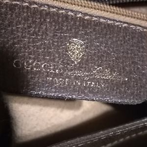 GUCCI purse/ handbag made in Italy # 86.02.021 has gold and silver hardware with GG monogram, zipper closure, snap closure on front pocket, and zipper pocket on inside ( has some wear as seen on pictures and also ink stain on inside lining)