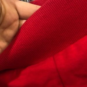 NWOT perfect condition never worn red shorts w zipper details and grey mesh accent, thick, comfortable elastic waist
