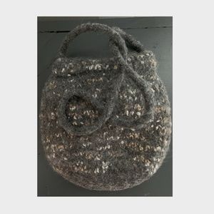Small, felted wool bag was purchased at a Charity Ball fund raiser. "She" is adorable, the flower has tiny accents in middle that flirt with every movement! It is 8" across widest spot and 8" long with top closed, the strap hangs 14" from top. Never carried "her", but have enjoyed viewing bag in my closet this winter! From a pet and smoke free home.