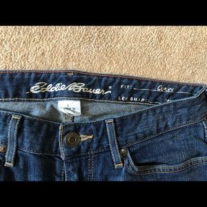 Like new condition Eddie Bauer size 6 curvy boot cut jeans with stretch No stains snags or hem wear from a smoke free home