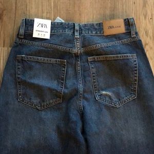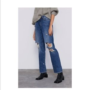NEW!! Zara High Waisted Ripped Straight Leg Jeans
