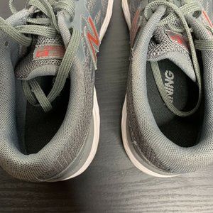 This is a good pair of preowned womens size 5.5 New Balance grey and red Tech Ride running shoes.