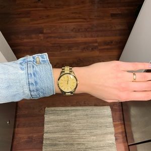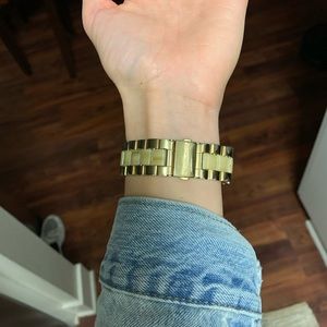 Gorgeous gold Michael Kors watch. Previously loved but still has a lot of life! I do not have the box or extra links. My wrist is about 6.5 inches around