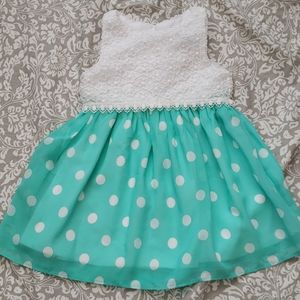 Rare Editions Floral Crochet and Polka Dot Dress. Dress is lined. Keyhole with button closure on back.