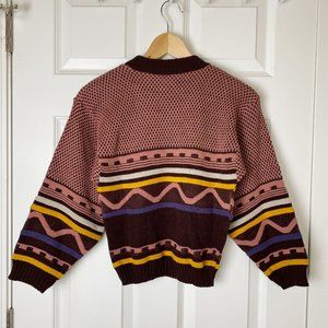 Cropped Knit Sweater, Pink Brown, Made in USA, NWOT, Size M