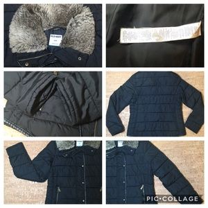 Old Navy Black Puffer Faux Fur Collar Trim Jacket