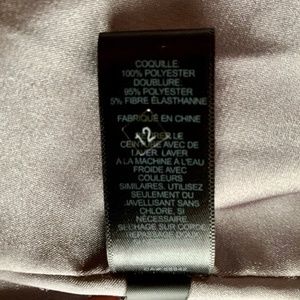 Lined, elastic waist with keyhole collar and at button closure in back.