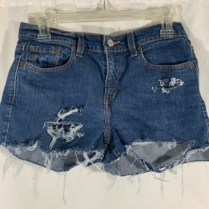 You are purchasing a pair of Women's Pre-Owned Cutoff Levi's 515 Shorts Size 6 S. This pair of shorts was Originally a pair of boot-cut 515 Jeans cut 11" into a great looking pair of shorts. A great distressed look for outdoor occasions.