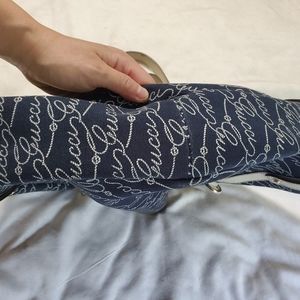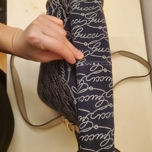 Very rare and vintage Gucci! The white leather handles are in good shape, one slight area where the stitching is loose (see in pictures). On the corners and bottom (see picture) the navy cloth is showing some white areas through the use over time. Inside purse is pristine. No smoking home!