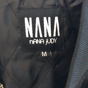 ๐ NANA JUDY Unisex Black Bomber Jacket; Parachute w/ Silver- tone