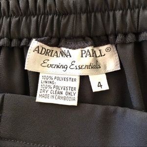 Elegant, graceful, stylish, and feminine apron palazzo pants by Adrianna Papell! Perfect for parties and other formal events. Wide leg, fluid chiffon, with sheer panels in the front and back of the legs. Elastic waistband.