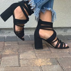 NIB Black Block Chunky Heel Chord Straps Pupm